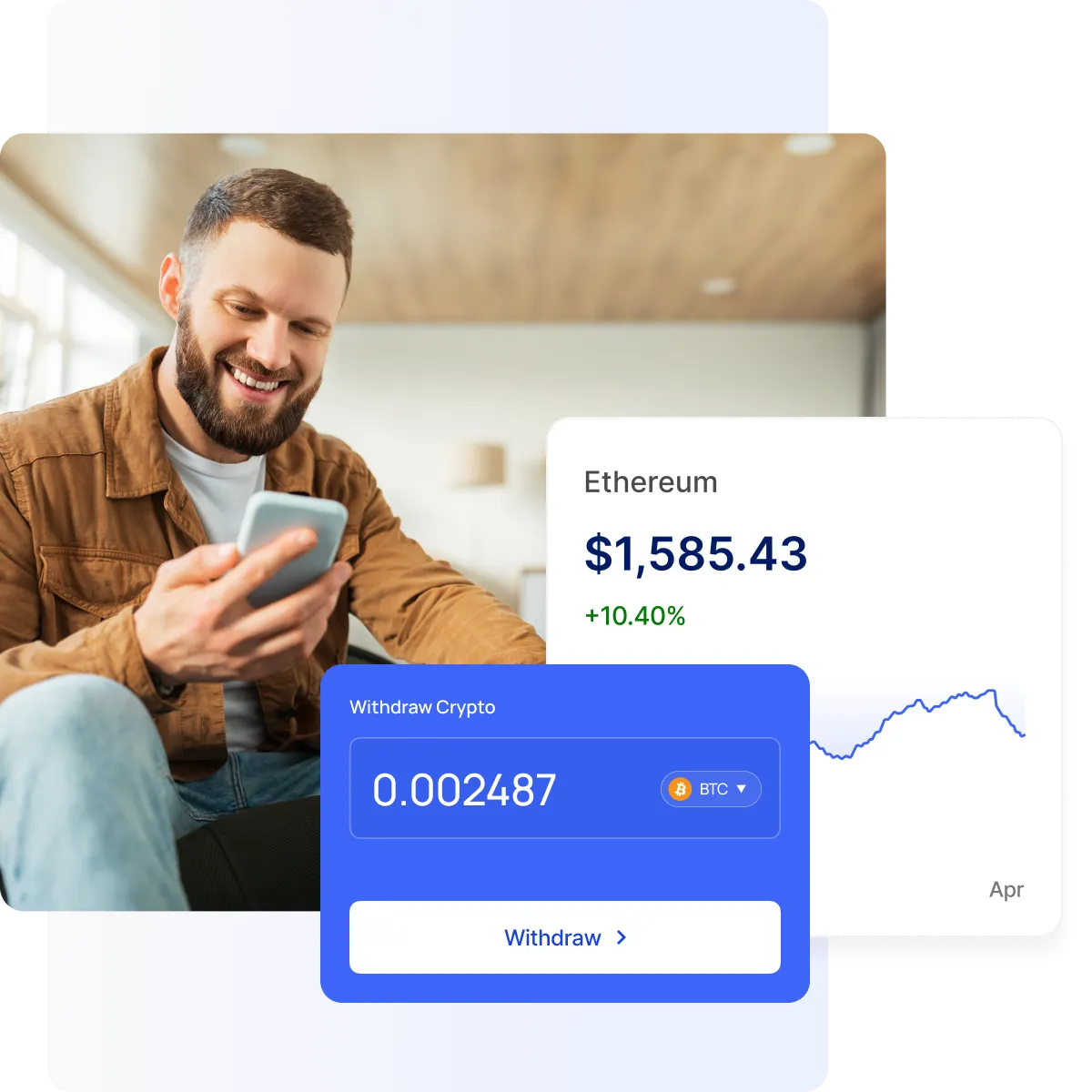 Access cash or USDC while your Bitcoin and Ethereum keeps working for you. Through our partnership with APX Lending, a regulated and trusted crypto lending platform, you can borrow securely with insured custody, full on-chain visibility, and some of the most competitive rates in the market.