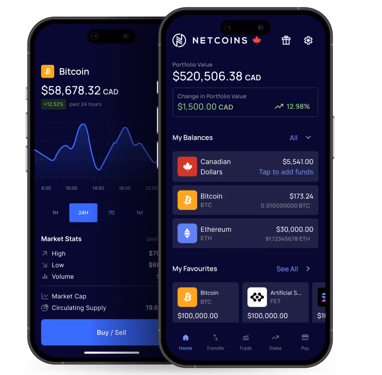 Fund your account with Interac e-Transfers, bank wires and/or crypto deposits. The Netcoins mobile app makes it easy for you to withdraw cash or crypto too. Get started with as little as $10!
