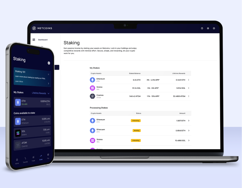 Faster, easier, more convenient crypto staking. Fund, trade, stake, and withdraw directly through the Netcoins mobile app.